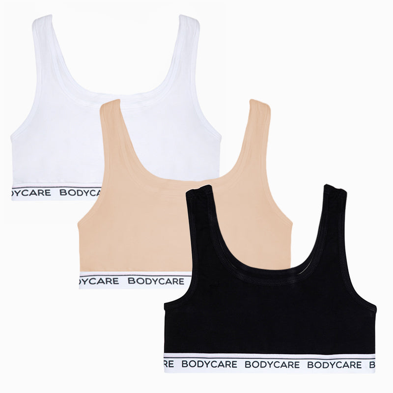 Bodycare Girls Crop Top Racer Back Sleeveless Solid Pack Of 3 - Black, Skin & White