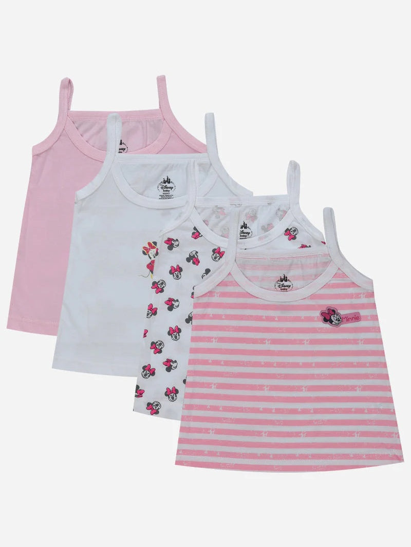 Bodycare Minnie & Friends Girls Vest Dori Neck Sleeveless Solid Pack Of 4
