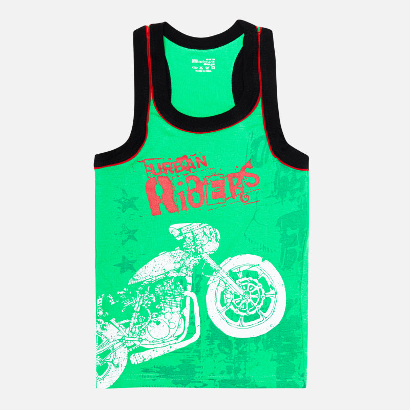 BODYCARE Boy's Kids Regular Fit Vest, 100% Cotton, Skin Friendly, Lightweight, Sleeveless Designs, Pack of 3 Print (Color & Print May Vary) Black & Green