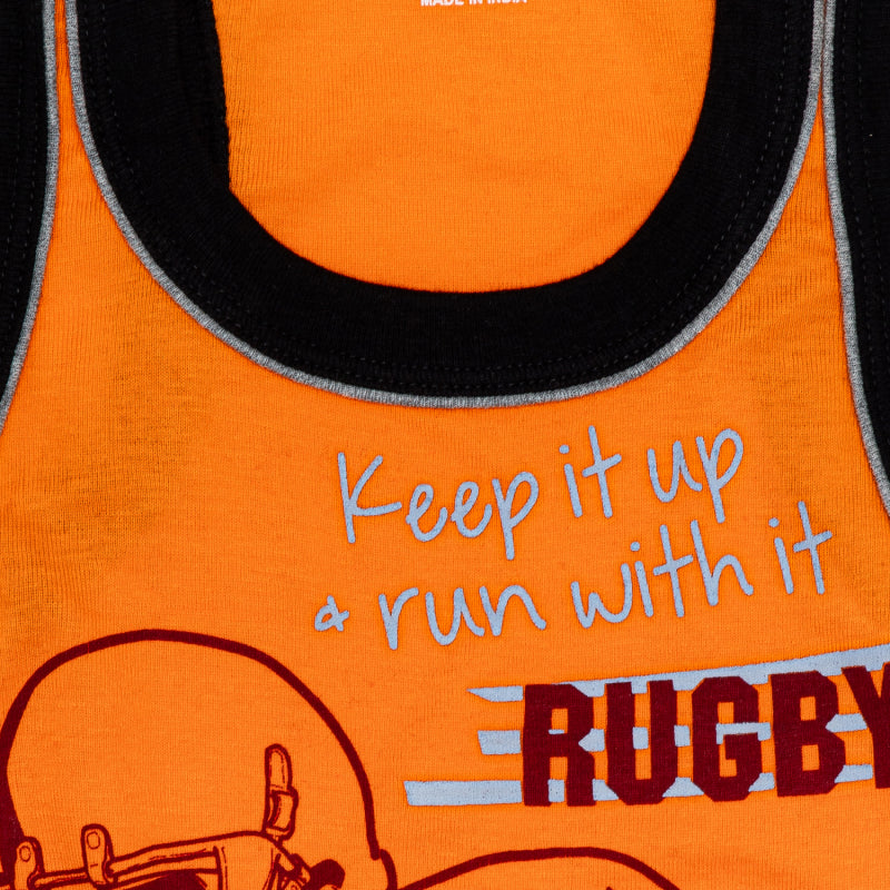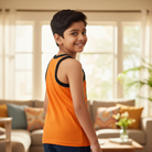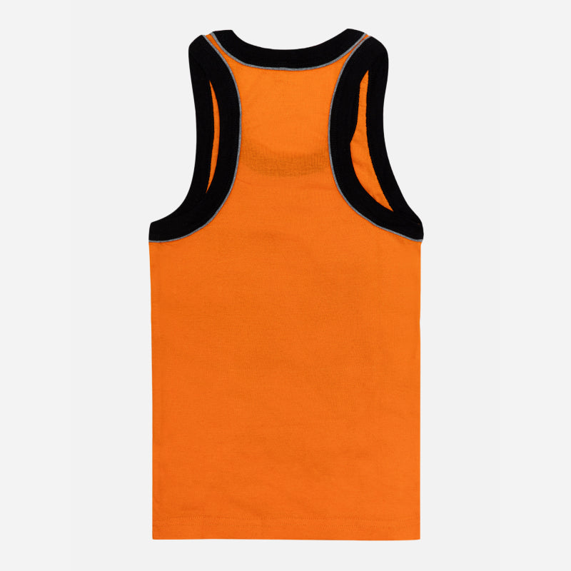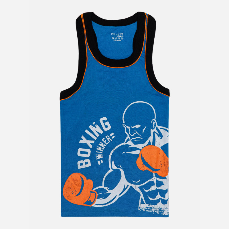 BODYCARE Boy's Kids Regular Fit Vest, 100% Cotton, Skin Friendly, Lightweight, Sleeveless Designs, Pack of 3 Print (Color & Print May Vary) Orange & Blue