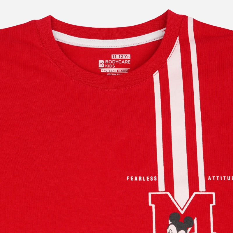 Bodycare Mickey & Friends Boys Round Neck Regular Fit Tshirt Red
