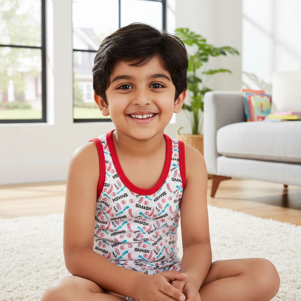 "Keep your little one feeling fresh and comfortable all day with our ultra-soft boys' vests, designed for everyday wear. Made from premium-quality, breathable cotton fabric, these vests provide superior comfort, making them perfect for layering under shirts, t-shirts, or sweaters. The lightweight, moisture-wicking material keeps your child cool in warm weather and cozy in cooler temperatures, ensuring all-day ease.