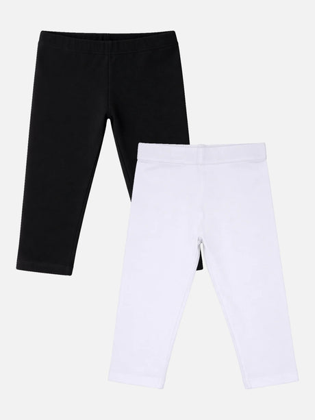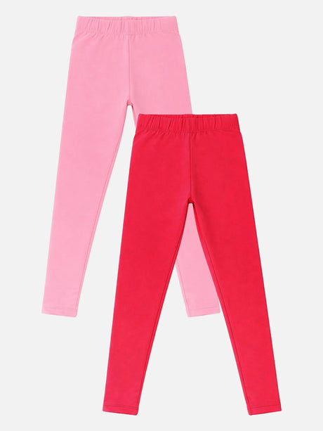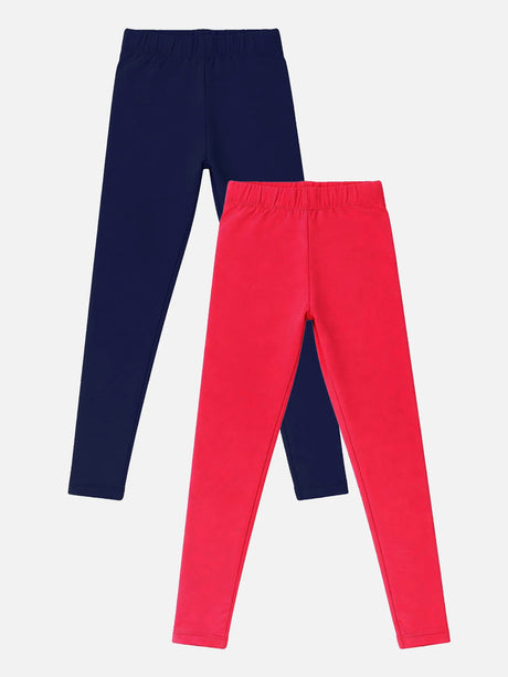 Girls Cotton Spandex Leggings Inner Elastic Stretch Pack of 2