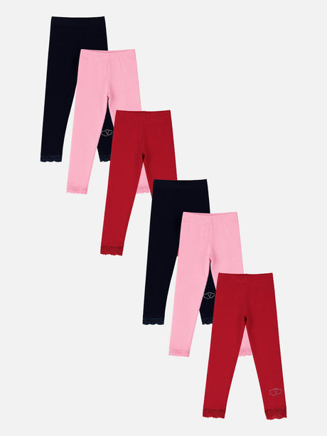 Girls Cotton Spandex Leggings Inner Elastic Stretch Pack of 6
