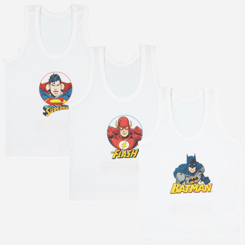 Bodycare Justice League Boys Vest Round Neck Sleeveless Solid Pack Of 3