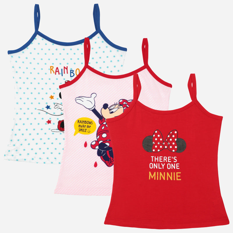 Bodycare Minnie & Friends Girls Vest Round Neck Sleeveless Solid Pack Of 3