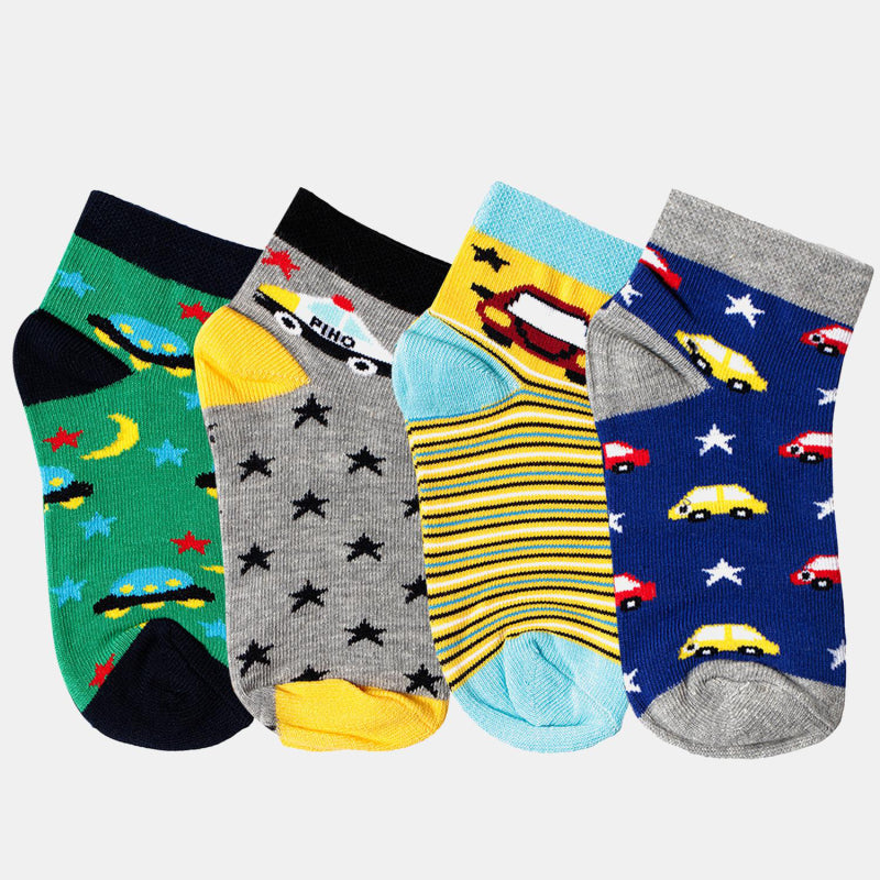 Bodycare Kids Ankle Length Socks Pack of 4 Cotton Soft Stretchable Comfortable Antibacterial Moisture Wicking Socks Sports Casual Use