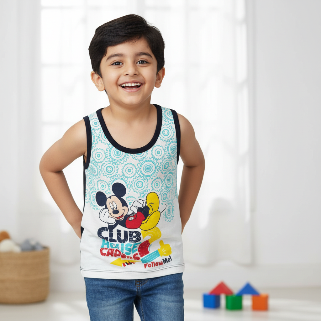 "Keep your little one feeling fresh and comfortable all day with our ultra-soft boys' vests, designed for everyday wear. Made from premium-quality, breathable cotton fabric, these vests provide superior comfort, making them perfect for layering under shirts, t-shirts, or sweaters. The lightweight, moisture-wicking material keeps your child cool in warm weather and cozy in cooler temperatures, ensuring all-day ease.