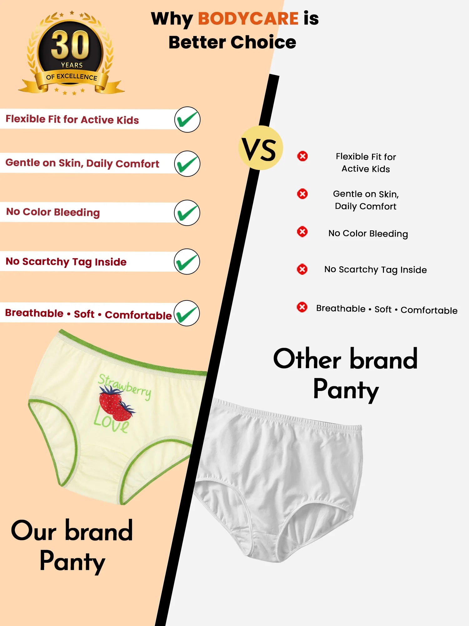 Ensure all-day comfort and breathability for your little one with our ultra-soft and stretchable kids' panty, designed for a snug yet gentle fit. Made from high-quality, skin-friendly fabric, these panties provide superior softness, ensuring irritation-free wear for delicate skin. Designed for breathability, flexibility, and all-day ease, our comfortable kids' panties provide the perfect blend of style and functionality for happy, active kids!"